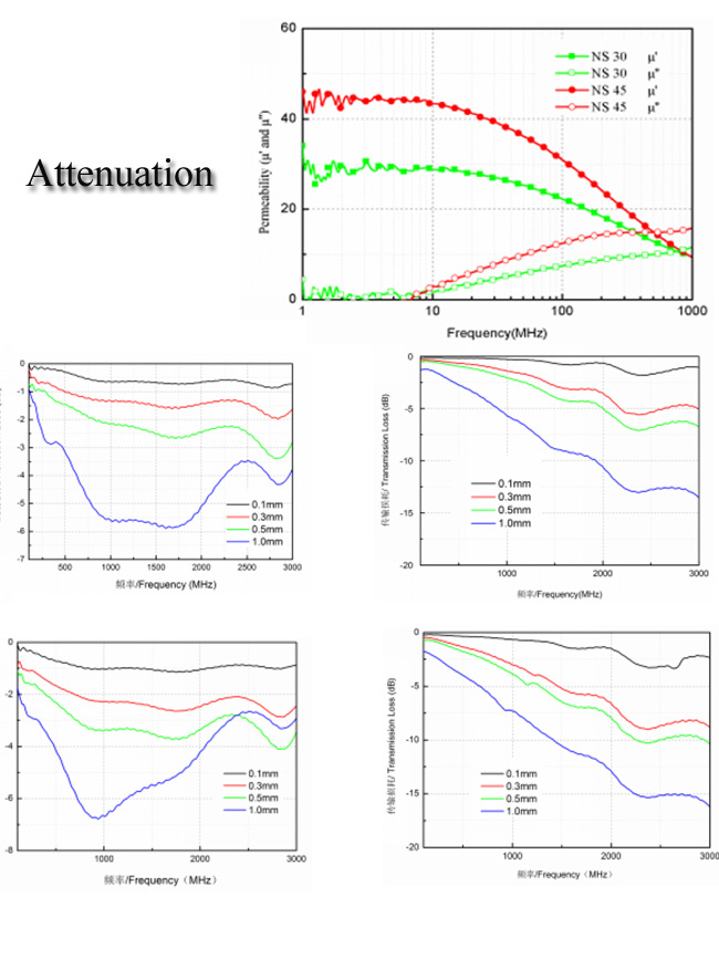 NS系列电磁干扰吸收胶带的渗透率: