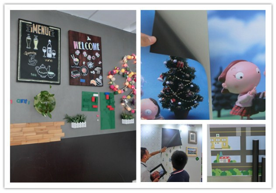 这种有弹性的亚铁板越来越受欢迎,用作磁性墙纸,应用于有一层带有粘合剂的磁性板的墙壁。将这种具有磁性的材料与数字打印或其他材料复合,并打印漂亮的设计和图像,就可以轻松替换这种墙纸。餐馆、企业和房主可以根据节日、季节或心情轻松地更换他们的墙纸。这种磁铁接收片的多功能性创造了许多不同的装饰和广告的可能性。